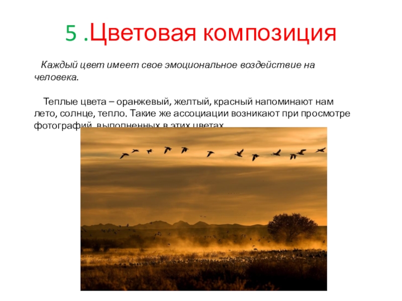 Теплые цвета – оранжевый, желтый, красный напоминают