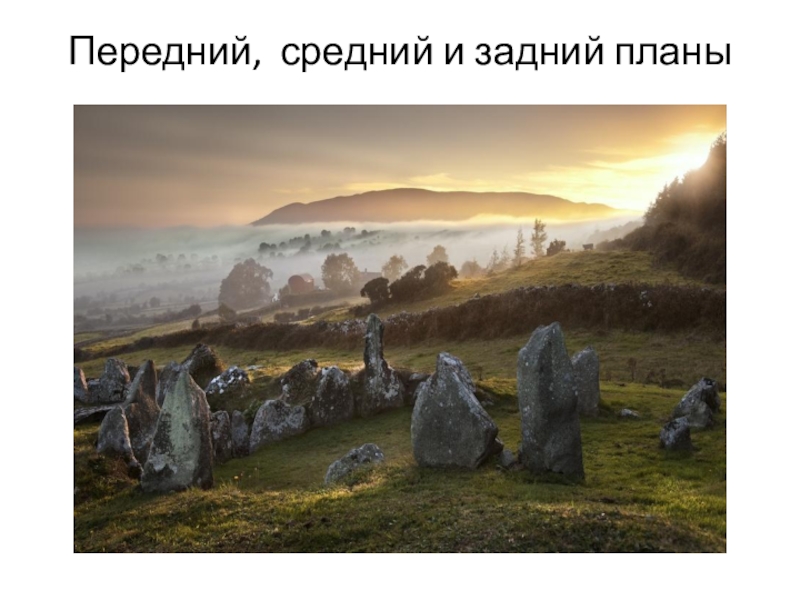 - максимально удаленные от нас в пространстве, очень часто находящиеся на горизонте или приближающиеся к нему — дальний план.