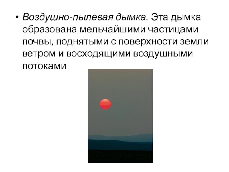 Слайд 22Воздушно-пылевая дымка. Эта дымка образована мельчайшими частицами почвы, поднятыми с