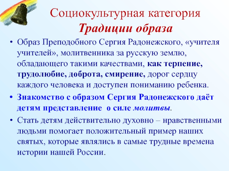 Знакомство с образом Сергия Радонежского даёт детям представление о силе молитвы.