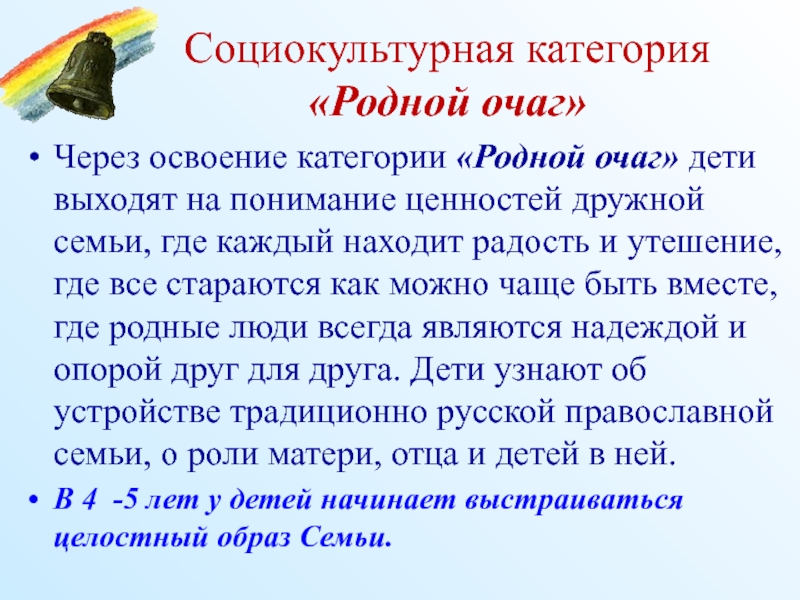«Социокультурные истоки». Особенности программы «Истоки» в дошкольном образовании». Логика освоения детьми и родителями основных категорий программы «Истоки» в дошкольном образовании»: