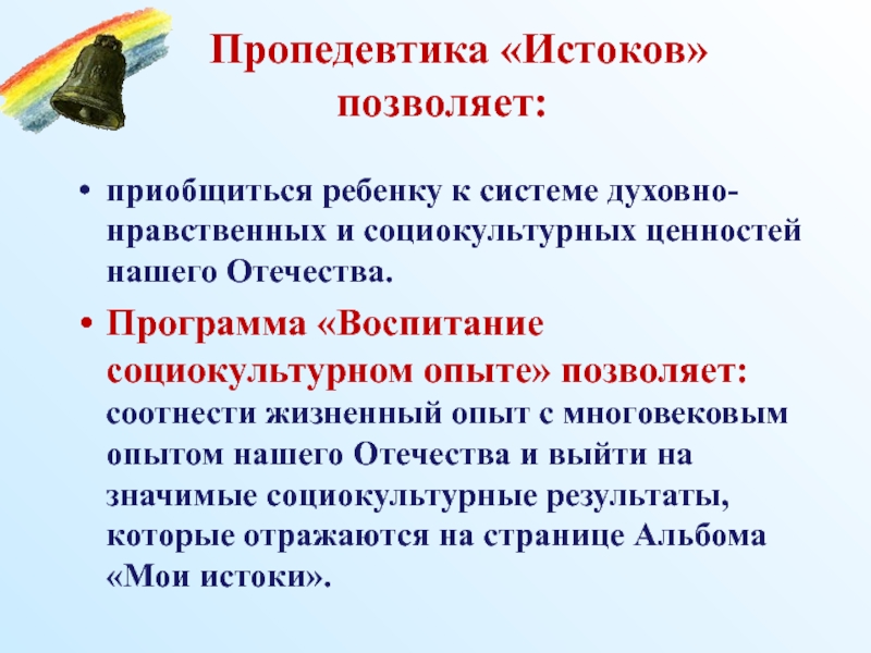 Слайд 3 Пропедевтика «Истоков» позволяет: