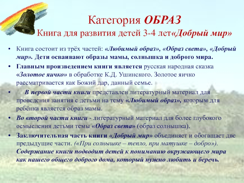 - развитие у детей способности видеть Образ, слышать Слово, чувствовать окружающий мир и проявлять к нему свое доброе отношение;