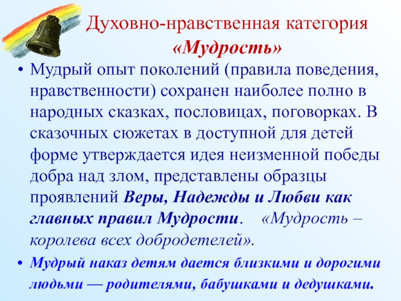 ценности внутреннего мира человека (Вера, Надежда, Любовь, Мудрость);
