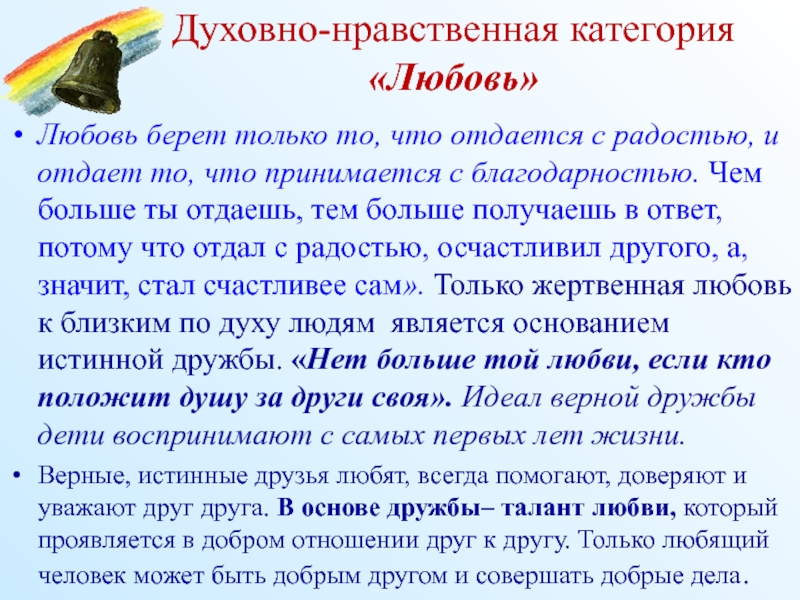 духовно – нравственных категорий и ценностей. Главный критерий отбора содержательного