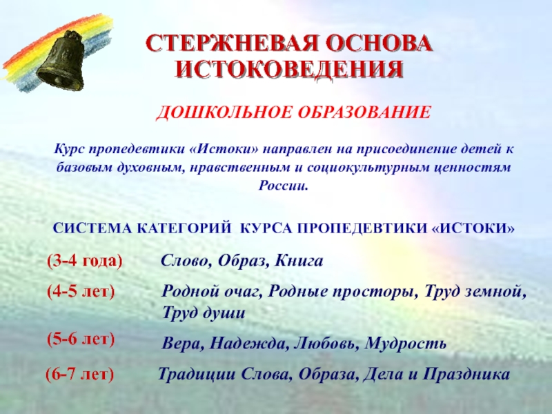 Слайд 5Курс пропедевтики «Истоки» направлен на присоединение детей к базовым духовным,