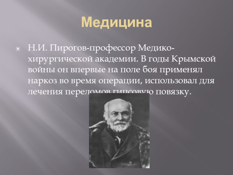 Н.И. Пирогов-профессор Медико-хирургической академии. В годы Крымской войны он впервые