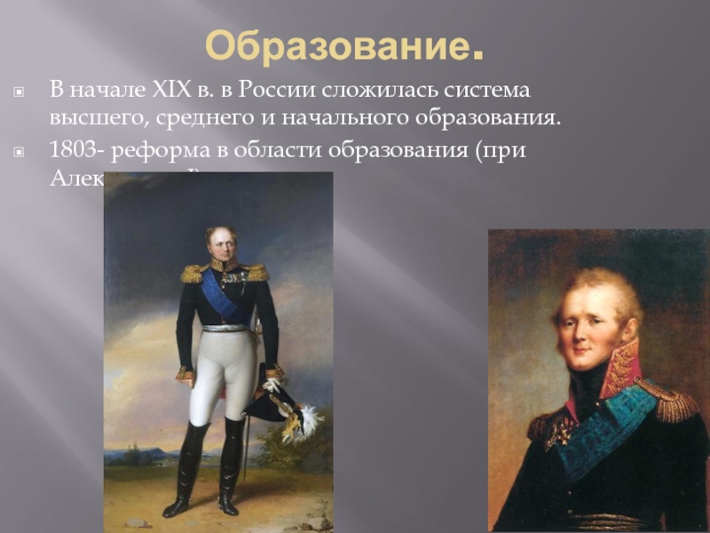 1803- реформа в области образования (при Александре I).