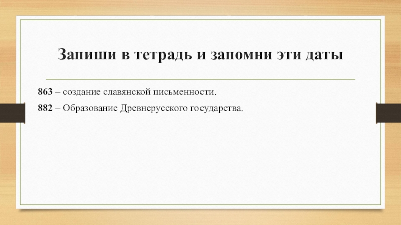 Слайд 3Запиши в тетрадь и запомни эти даты