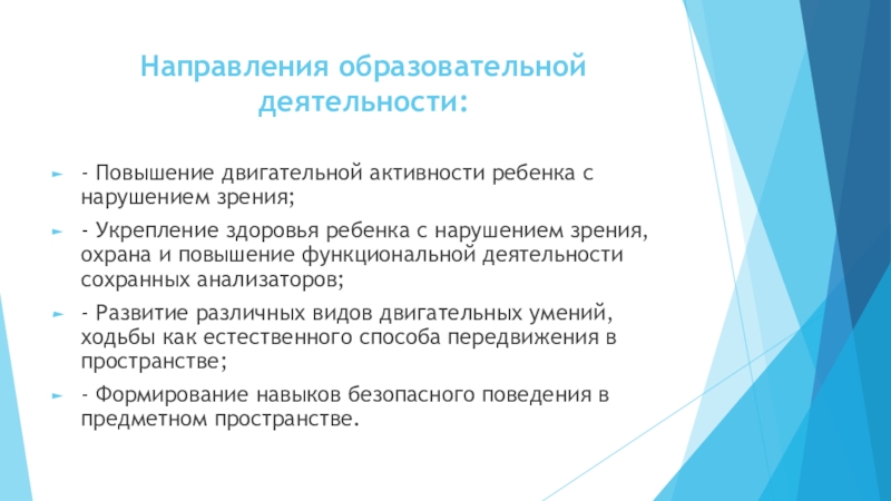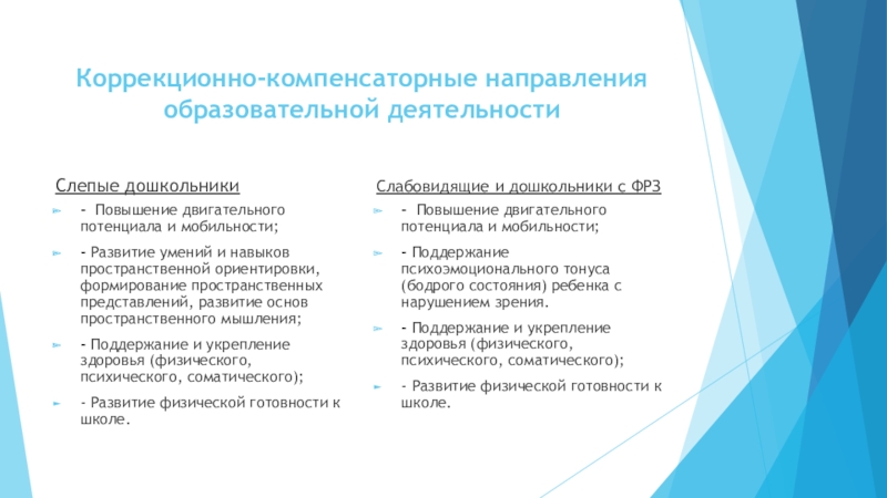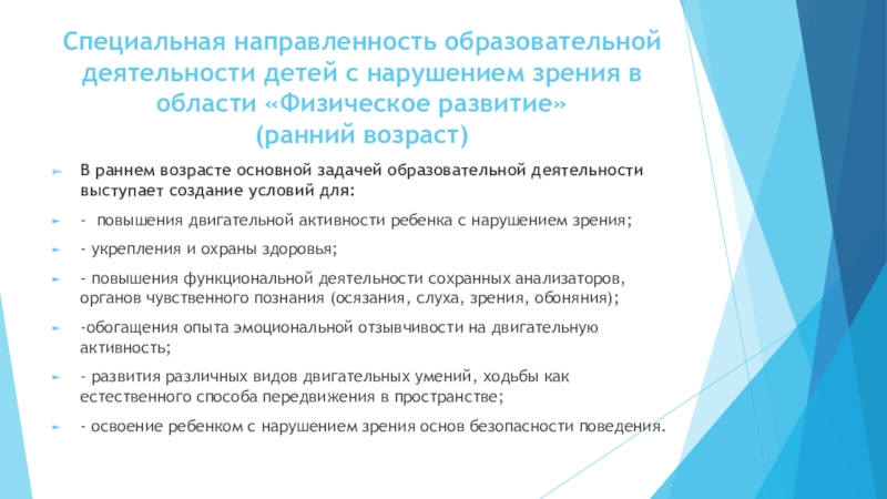 Слайд 2Специальная направленность образовательной деятельности детей с нарушением зрения в области