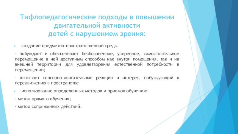 Слайд 5Тифлопедагогические подходы в повышении двигательной активности