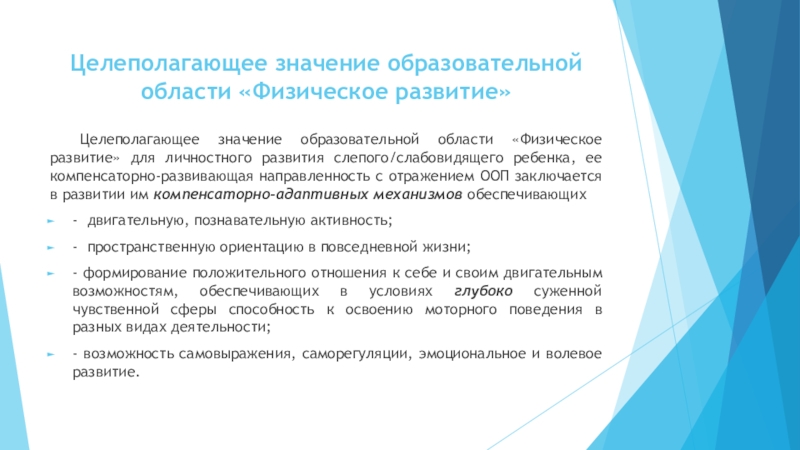 «Физическое развитие» для личностного развития слепого/слабовидящего ребенка, ее компенсаторно-развивающая направленность