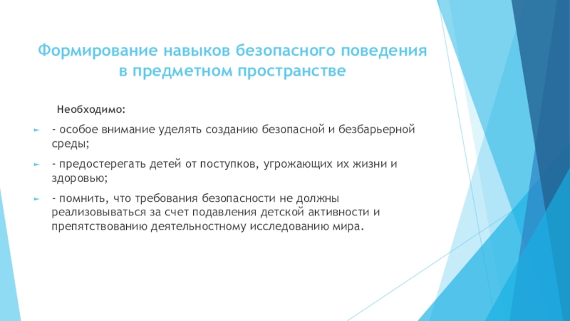 Слайд 10Формирование навыков безопасного поведения в предметном пространстве