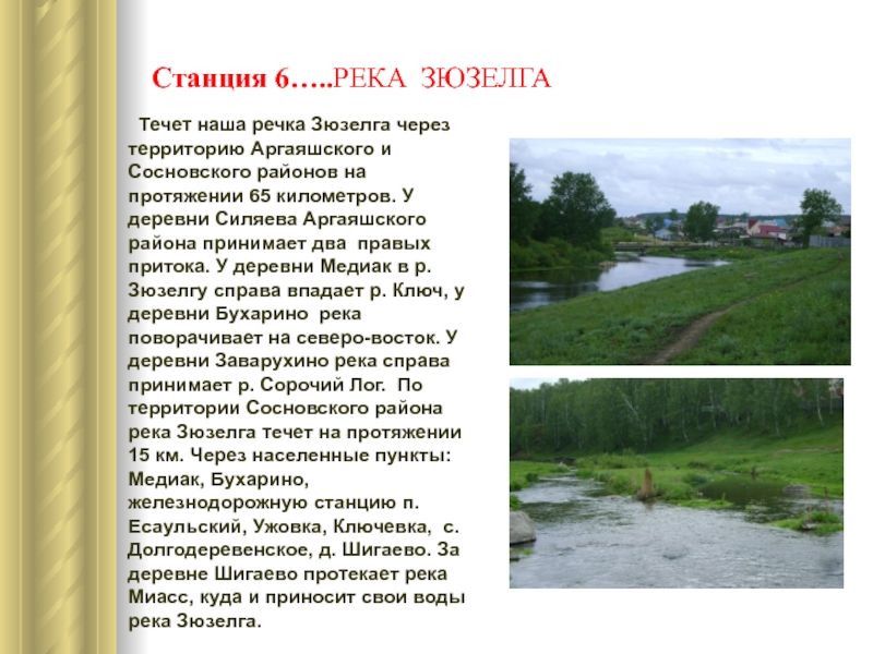Слайд 12Станция 6…..РЕКА ЗЮЗЕЛГА