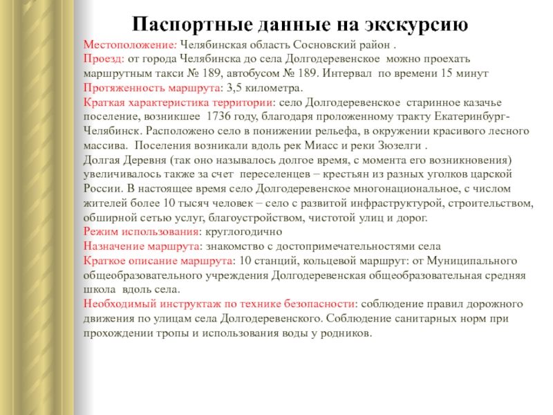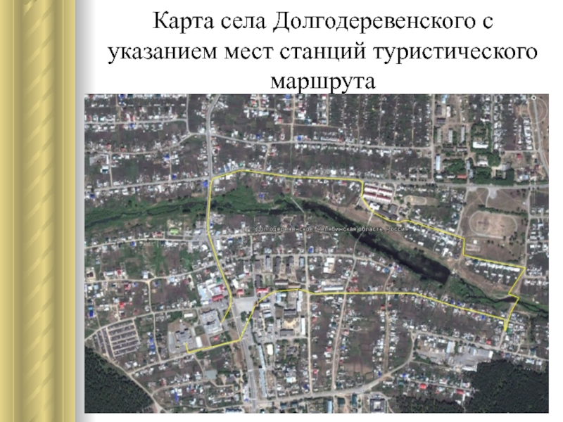 Слайд 2Карта села Долгодеревенского с указанием мест станций туристического маршрута