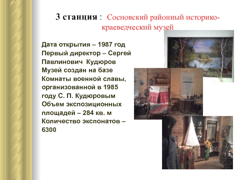 Слайд 93 станция : Сосновский районный историко- краеведческий музей
