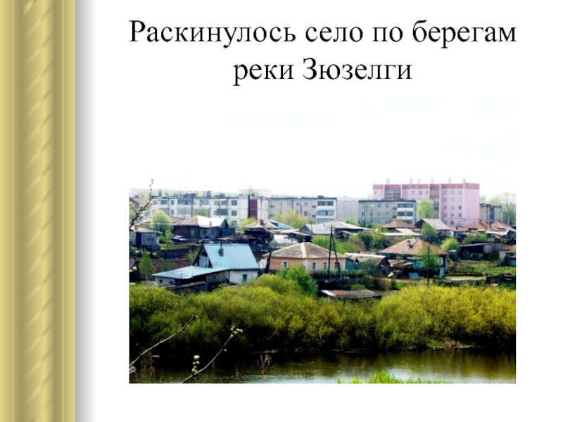 Слайд 4Раскинулось село по берегам реки Зюзелги