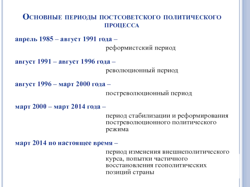 7. Назовите основные этапы российского политического процесса в конце ХХ и начале XXI века?