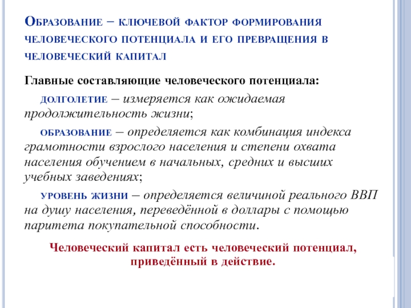 Человеческий капитал есть человеческий потенциал, приведённый в действие.