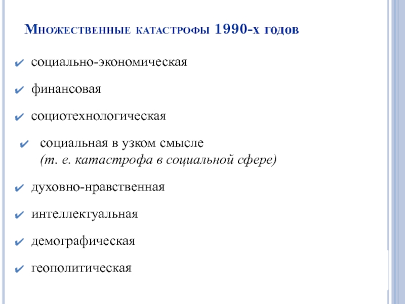 9. Почему и в каких отношениях любая социально-политическая революция выступает как катастрофа или серия множественных катастроф? Назовите революционные катастрофы в России 1990-х годов.
