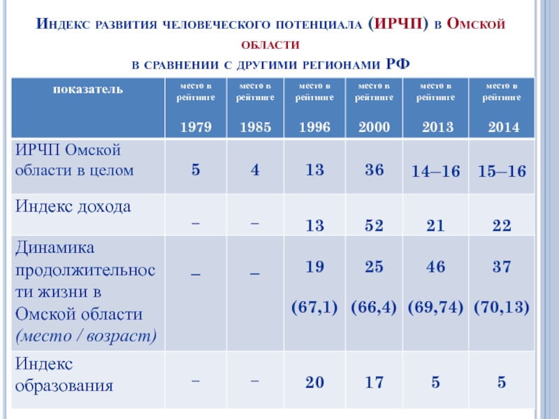 Индекс развития человеческого потенциала (ИРЧП) в Омской области