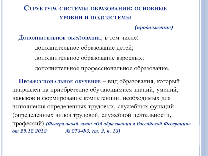 Слайд 12Структура системы образования: основные уровни и подсистемы