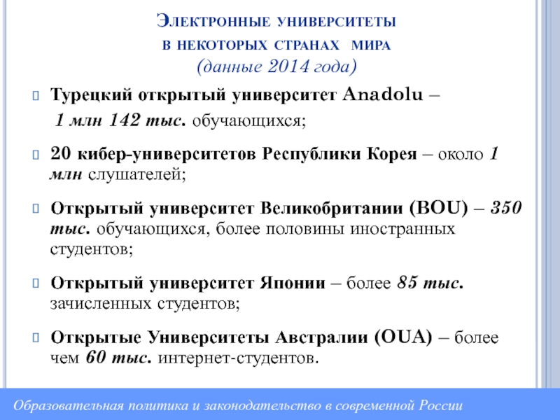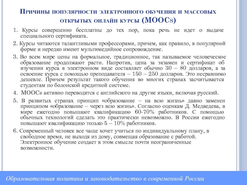 25. Каковы возможности и риски развития трансграничного электронного обучения вообще и массовых открытый онлайн курсов, в частности? Справедливо ли в данном случае утверждение о «бесплатном сыре в мышеловке»?
