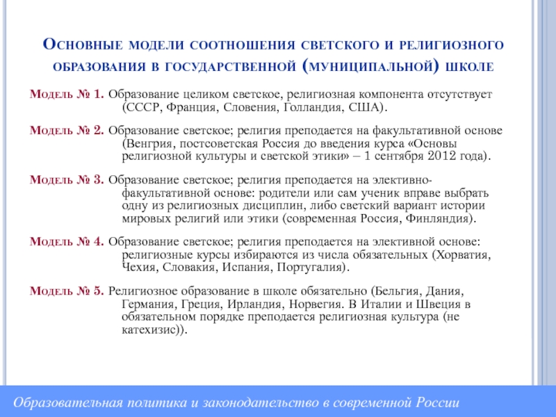 1. Светский характер образования в государственных и муниципальных образовательных учреждениях.