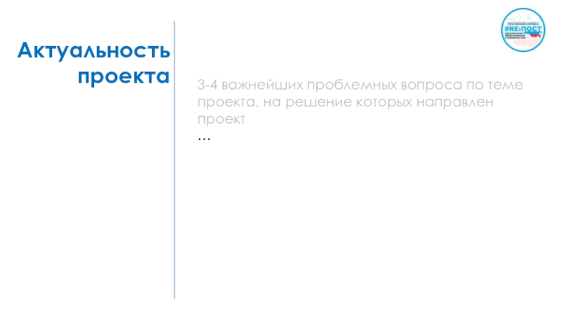 Актуальность проекта 3-4 важнейших проблемных вопроса по теме проекта, на решение которых направлен проект…
