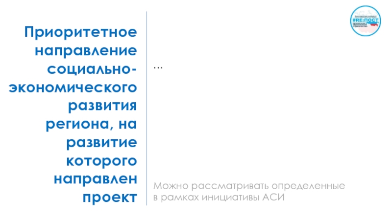 Приоритетноенаправление социально- экономического развития региона, на развитие которого направлен проект…Можно рассматривать определенные в рамках инициативы АСИ