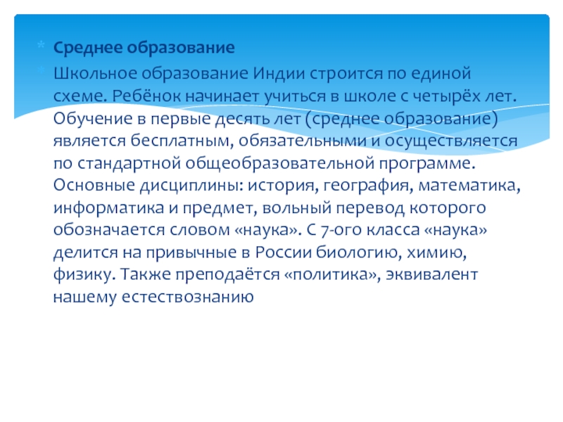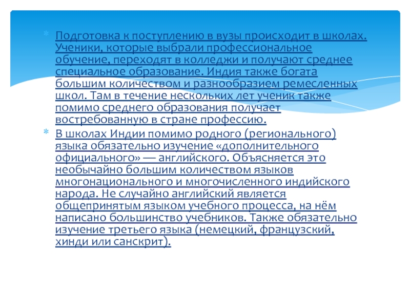 Слайд 8В системе среднего образования Индии работают и государственные и частные школы. Получение среднего