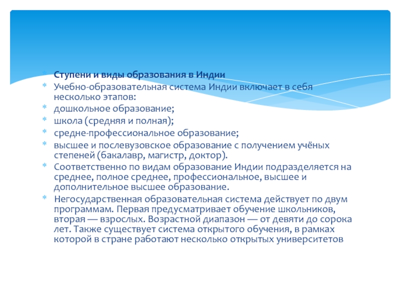 Слайд 3Ступени и виды образования в Индии