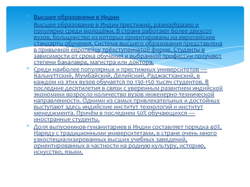 Слайд 11Высшее образование в Индии