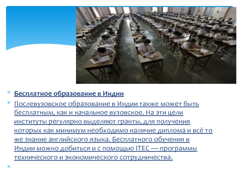 Слайд 12Бесплатное образование в Индии