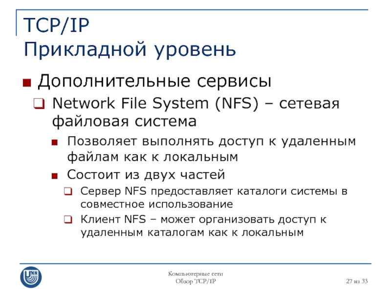 Клиент NFS – может организовать доступ к удаленным каталогам как к локальным