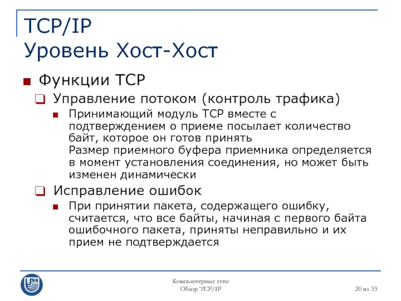Размер приемного буфера приемника определяется в момент установления соединения, но может быть изменен динамически