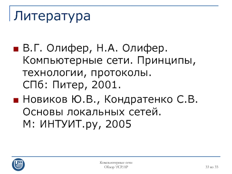 В.Г. Олифер, Н.А. Олифер. Компьютерные сети.