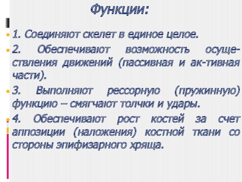 толчки и удары.4. Обеспечивают рост костей за счет аппозиции (наложения) костной ткани со стороны эпифизарного хряща.