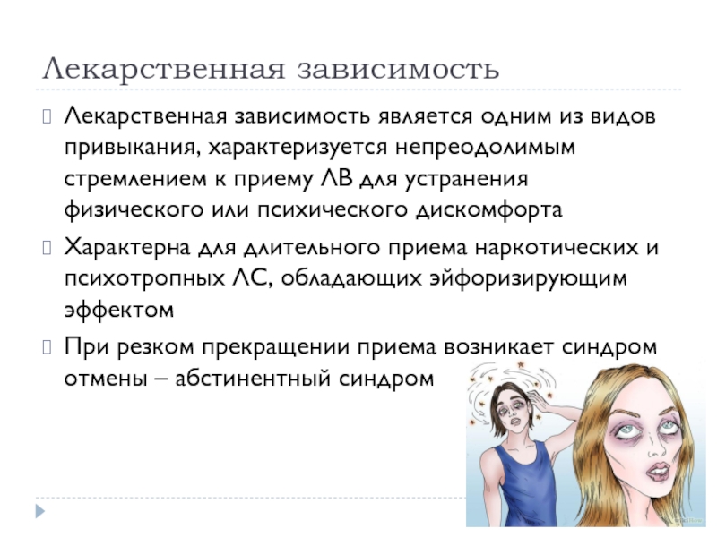 Лекарственная зависимость является одним из видов привыкания, характеризуется непреодолимым
