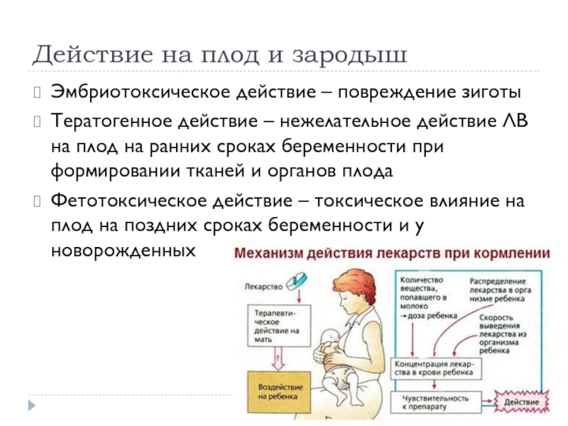 – нежелательное действие ЛВ на плод на ранних сроках беременности