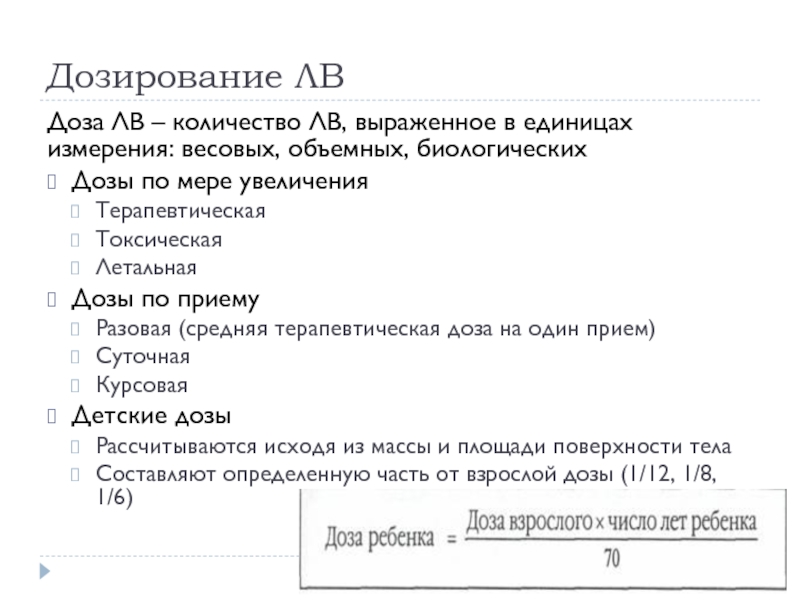 Доза ЛВ – количество ЛВ, выраженное в единицах измерения: