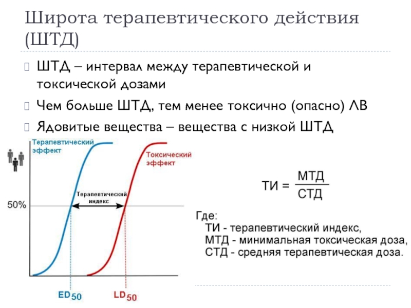Чем больше ШТД, тем менее токсично (опасно) ЛВ