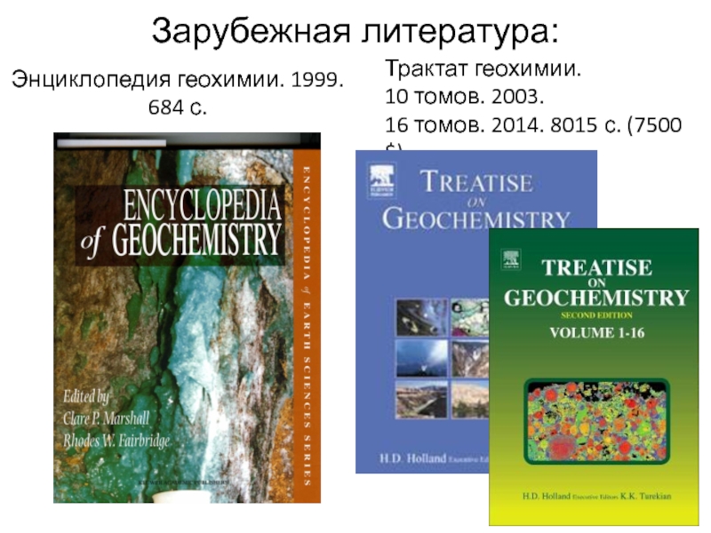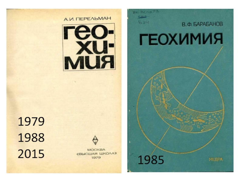 1. Перельман А.И. Геохимия. М.: Высшая школа, 1979, 1988, 2015.