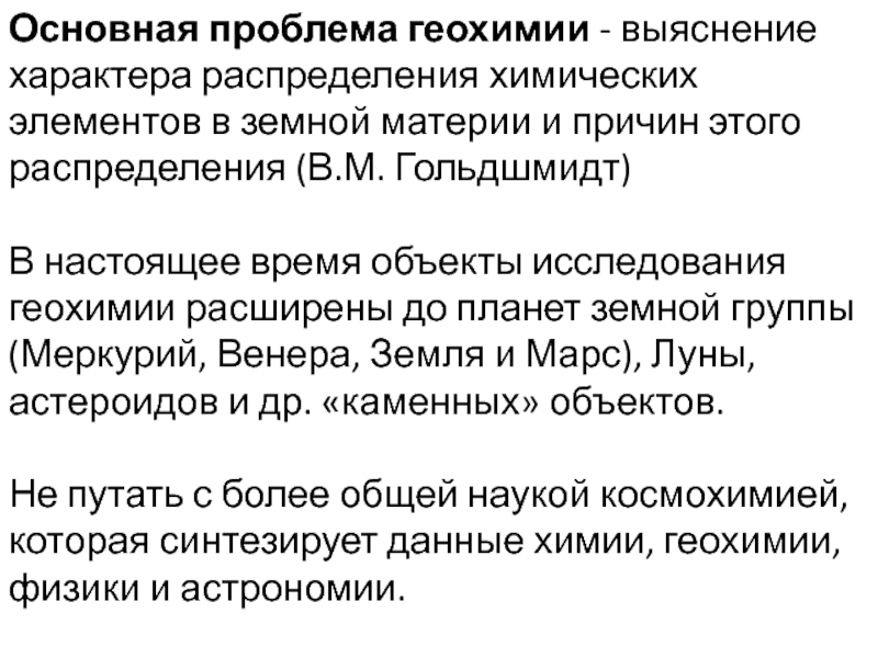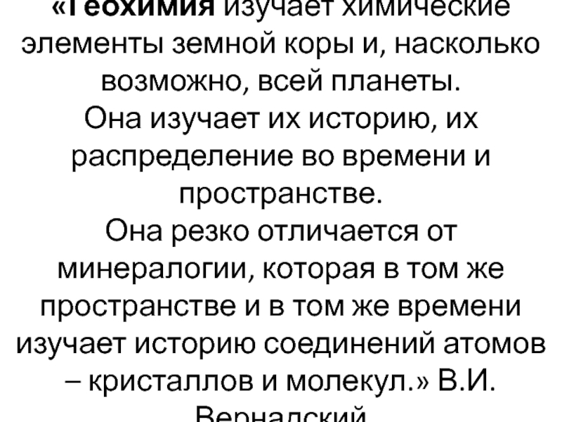 Слайд 26«Геохимия изучает химические элементы земной коры и, насколько возможно, всей