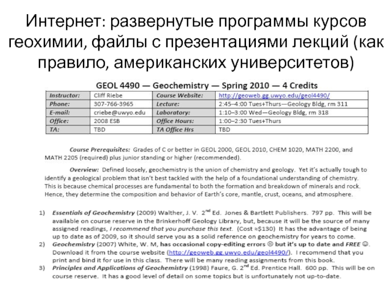 Слайд 21Интернет: развернутые программы курсов геохимии, файлы с презентациями лекций (как