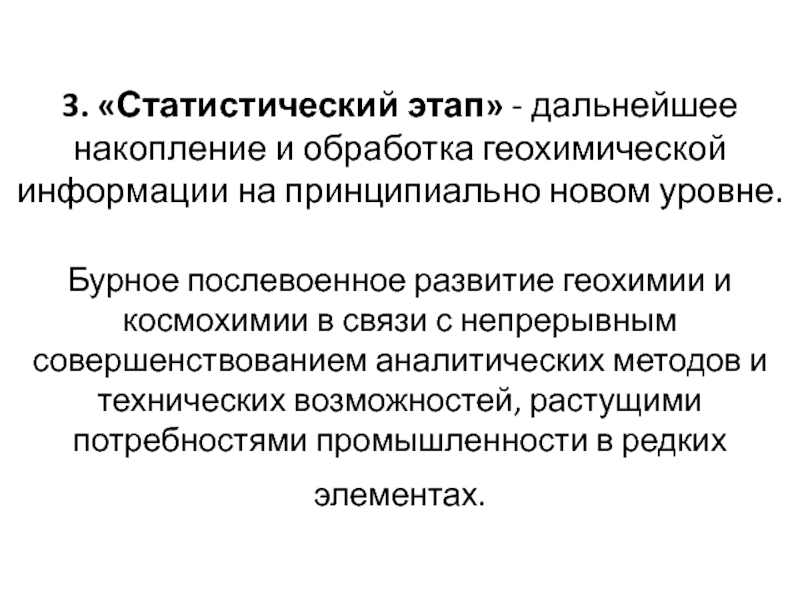 Слайд 443. «Статистический этап» - дальнейшее накопление и обработка геохимической информации