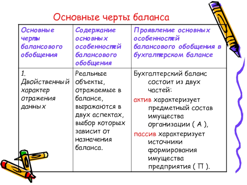 1. Части баланса (актив, пассив).
