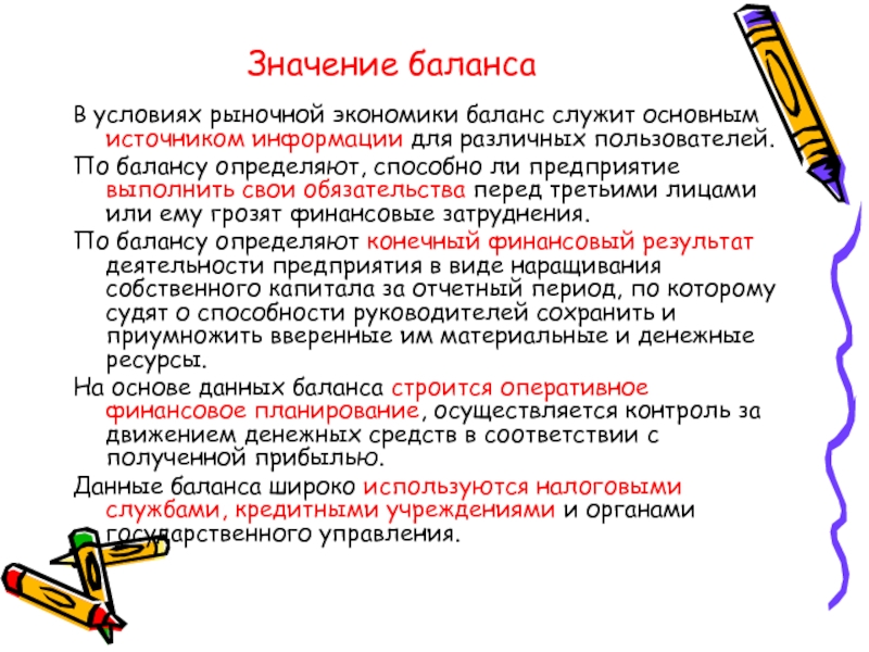 Слайд 27Значение баланса