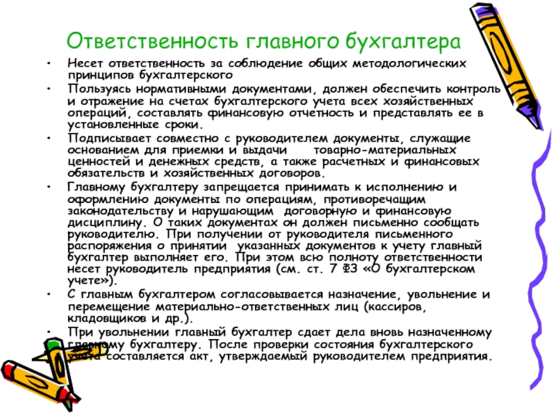 Слайд 12Ответственность главного бухгалтера