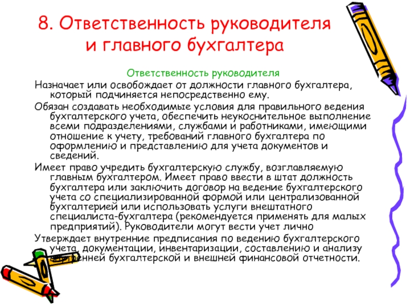 Слайд 118. Ответственность руководителя и главного бухгалтера